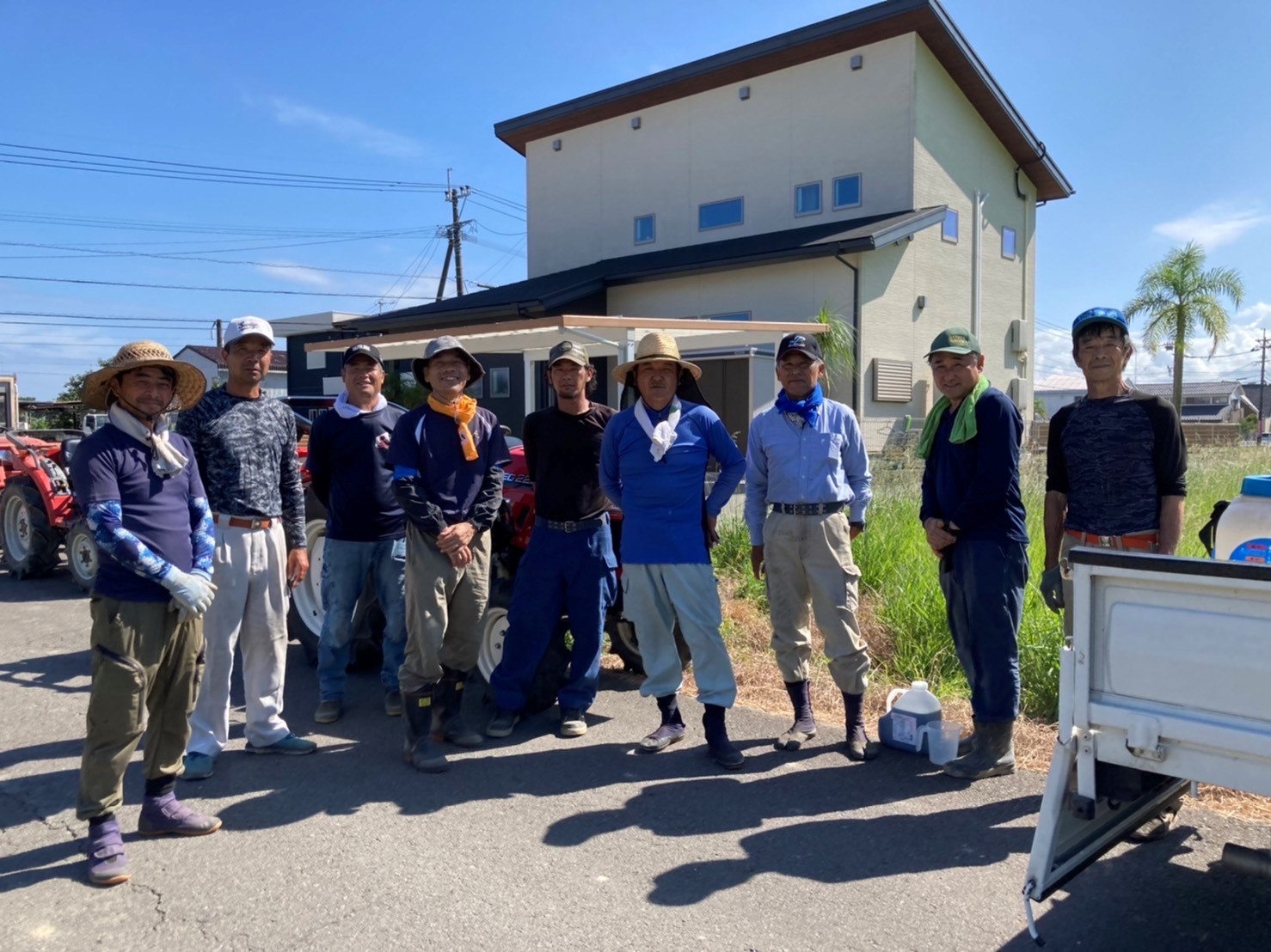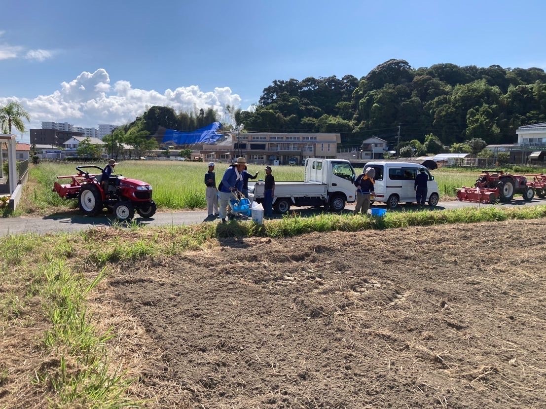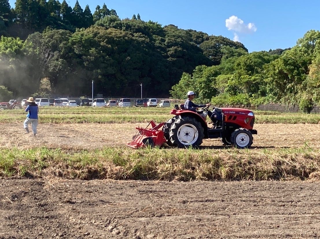 今日は元村地区で9名の皆さまが参加され、6台のトラクターで田んぼの荒おこしをし、肥料をまいた後はきれいに整地をしました。