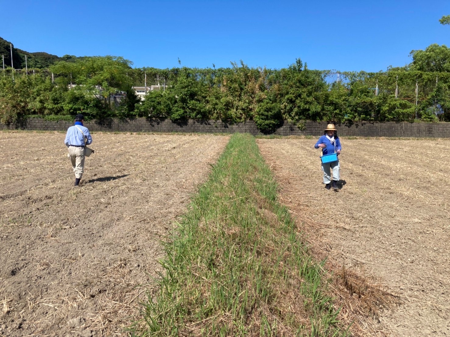 畦には除草剤をまき、コスモスの種まきの準備は終わりました。
