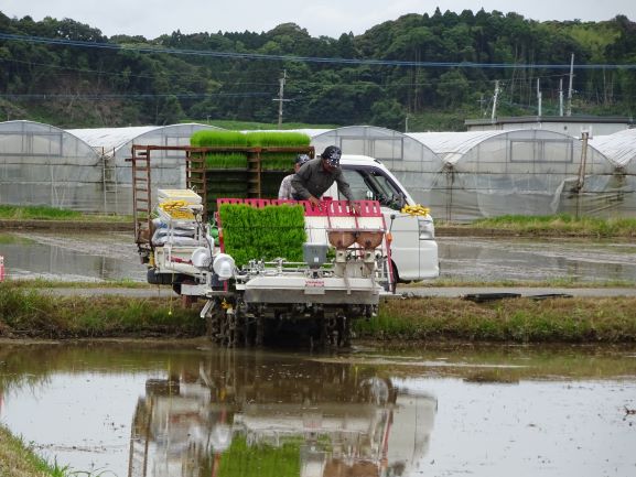 【先ずは機械で苗を植えていきます】
