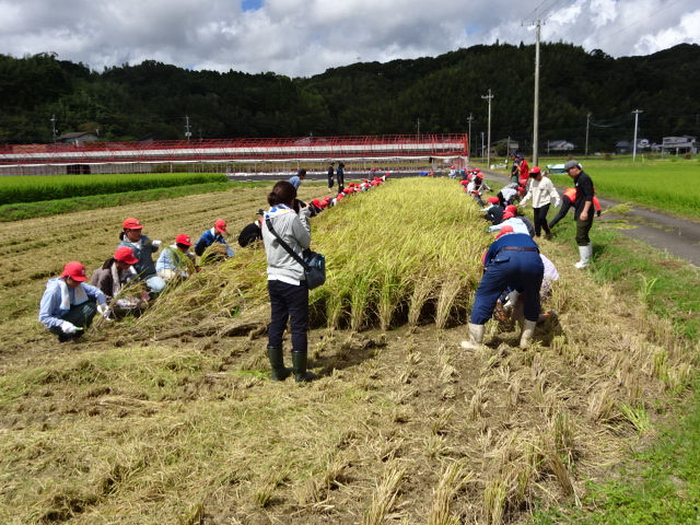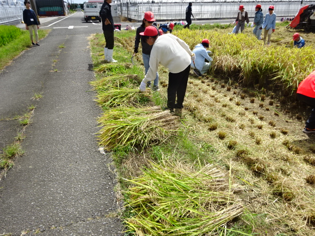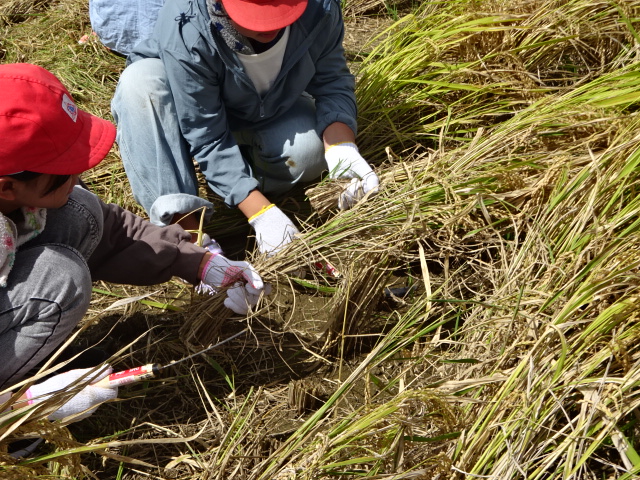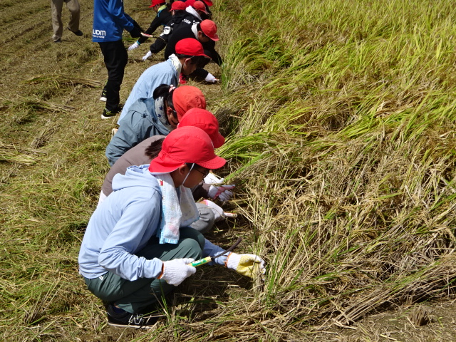 慎重に少しずつ鎌を動かす児童や一気に刈っていく児童など収穫を楽しんでいました。