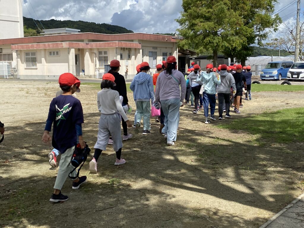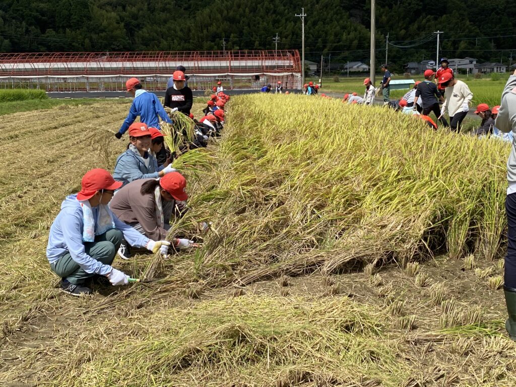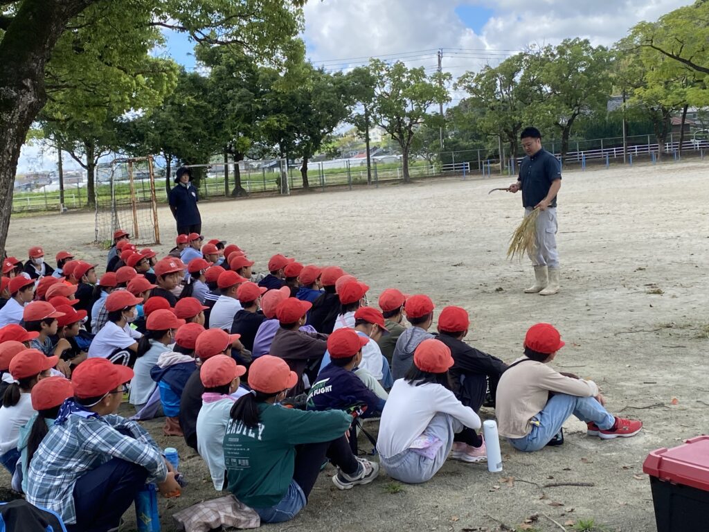 住吉小学校5年生が学校北側の田んぼの稲刈りをしました。
