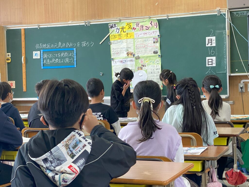 住吉小学校3年生総合的な学習「住吉地区の元気のひみつを探ろう」発表会(2月16日)