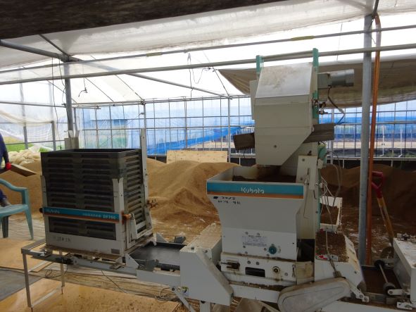 機械化された工程で苗床が次々に運ばれて行きました。